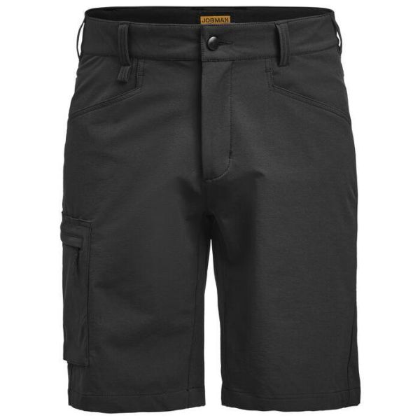 Serviceshorts, dame i 4-veis stretch i polyamid/elastan-kvalitet. Basert på Servicebukse stretch, dame 2319. Romslige frontlommer. Innfelte baklommer. Lårlomme med glidelås med ekstra innvendig lomme til mobiltelefon. Plass til penner i denne lommen.