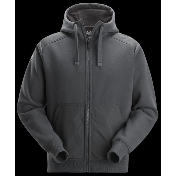 Denne slitesterke hettegenseren er laget i et bondet stoff med mykt fleecefôr som gir varme og komfort i alle arbeidsmiljøer. Jakken har CORDURA-forsterkninger på skuldre og albuer samt en kengurulomme. Jakken har en skjult lomme med glidelås inne i kengurulommen, perfekt for oppbevaring av eiendelene dine. Den har en behagelig hette, fôret med bomullstrikot og med brede snorer. Den klassiske, ledige passformen gir god komfort og bevegelsesfrihet. Jakken har et reflekstrykk på ermet for økt synlighet og et Snickers Workwear-broderi på ryggen. Velegnet for profiltrykk og logomerking.