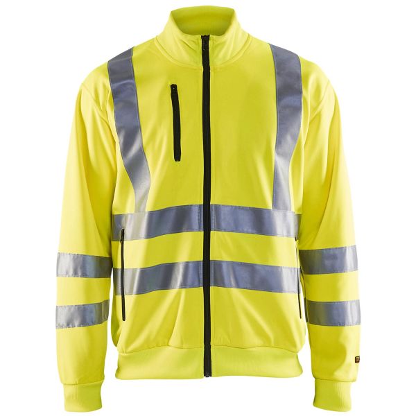 Varselgenser med perfekt passform og reflekser rundt om slik at du vises fra alle hold. Sweatshirten har glidelås, två lommer foran og en brystlomme. Ståkrage, enveisglidelås i plast, brystlomme med glidelås, sidelommer med glidelås, mansjett i nerkant, mansjett i ermeavslutning. Materiale: 100 % polyester, jersey-strikket, 240 g/m².
