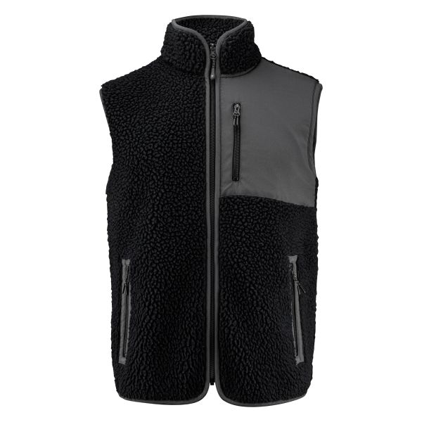 James Harvest Kingsley Pile er en tofarget fleecevest med kontrastmateriale på brystet og kanter langs kantene av sømmene. Brystlomme og sidelommer med glidelås. Pakket i en biobasert, komposterbar pose.