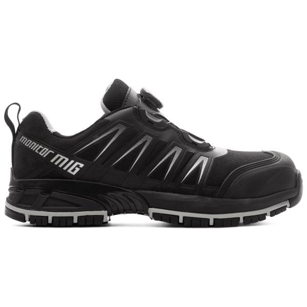 Monitor MEG Boa® er en vernesko i sportslig utførelse som ikke bare ser ut som en sportssko, men også har passform og komfort som en. Overdelen er produsert i et slitesterkt Ribstop-materiale med forsterkninger i TPU på sidene, og på tåen finnes en kraftigere TPU-beskyttelse for ytterligere å forsterke skoen. Overdelen er også utstyrt med Boa® Fit System som gjør det svært enkelt å ta av og på skoen.