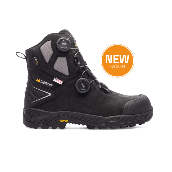 Monitors nye vinterstøvel Arctic Mid er en helt ny modell full av tekniske løsninger som skal gjøre arbeidsdagen i kalde omgivelser så god som mulig. Støvelen har et HDry Bio-membran som er laminert mot overdelen for helt å hindre at vann trenger inn mellom overdel og membran, noe som ellers gjør at foten blir kald. Støvelen er fôret med både pelsfôr og et 200 grams Thinsulate-fôr, og også innersålen er fôret med pels samt har en reflekterende aluminiumsfilm. Overdelen er produsert i ekte lær med doble BOA Fit System L+1 som snøring. Yttersålen er i Vibrams helt nye konsept Tractiongrip -40, med knotter som gir ekstremt godt grep på snø og i kaldt klima. Mellomsålen er produsert i ETPU som holder seg myk selv i ekstrem kulde.