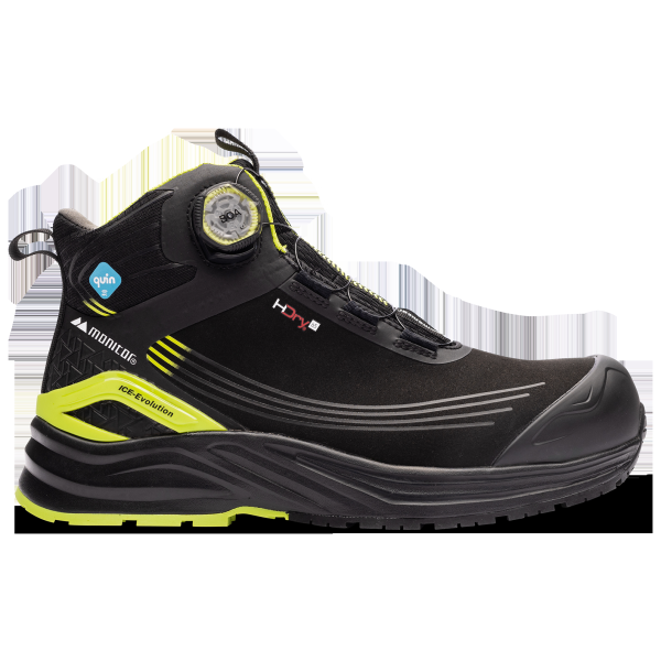 En avansert vernesko utstyrt med en smart SFC-brikke fra Quin og et unikt M-Return-sålesystem med yttersåle i gummi og mellomsåle i Super Critical Foam som gir svært god støtdemping. Høy komfort med Monitors nye Equip Fit-passform som er tilpasset tåhetten MNTR1. M4 BOA Fit System og HDry Bio-membran som gjør skoen fullstendig vanntett.
