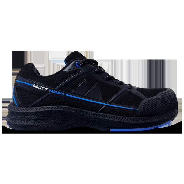 Paradox M er en ny sko i Monitors Paradox-serie. Paradox inneholder lette og komfortable vernesko som til tross for høy komfort ikke går på akkord med sikkerheten. Alle sko i denne serien har en mellomsåle laget av et ekstremt mykt ETPU-materiale som har en såkalt Return – Rebound på over 58 %, en av markedets absolutt best polstrede vernesko.