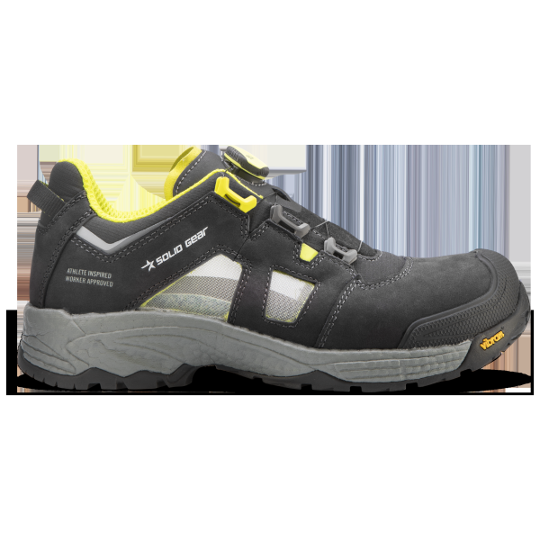 Vapors tredje generasjon er oppgradert med flere høyytelsesmaterialer og komponenter. Denne varianten av den klassiske Vapor har ventilasjonsvinduer på sidene dekket med mesh som lar foten puste. Overdelen er en kombinasjon av LWG nubuck-skinn og spesiell ripstop-tekstil som er både slitesterk og tilført teknologi som tåler alt vær. Fôr i behagelig 3D mesh og med dempende innersåle fra OrthoLite®, spesialdesignet for Solid Gears lest. Under ligger en ETPU mellomsåle med energiretur og god demping som varer over tid. Doble TPU-lenker er integrert i mellomsålen for å opprettholde markedsunik stabilitet og vridningsstivhet. Gummi yttersålen fra Vibram® er meget slitesterk med god sklisikkerhet. Integrert i skoen er en tåhette av glassfiber og myk spikerbeskyttelse som holder foten trygg uten at det går på bekostning av komforten.