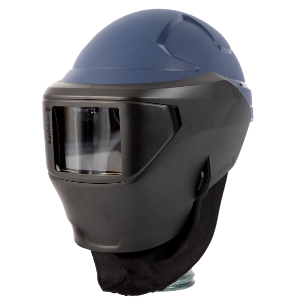 Sundström hjelm med sveisevisir, artikkelnummer H06-9310. Sveisevisir SR 574 er beregnet for bruk sammen med Sundströms hjelm med visir SR 575. Komplett hjelm med sveisevisir, sammen med den batteridrevne vifteaggregatet SR 500 eller SR 700 og godkjente filter, inngår i Sundströms vifteassisterte åndedrettsvernssystem. Hjelmens åndedrettsslange kobles til vifteaggregatet med filter. Overtrykket i hjelmvisiret hindrer partikler og andre forurensninger i å trenge inn i pustesonen. Kombinasjonene beskytter mot skadelige gasser/partikler, stråling og sprut ved sveising, skjærebrenning, sliping og lignende arbeider.