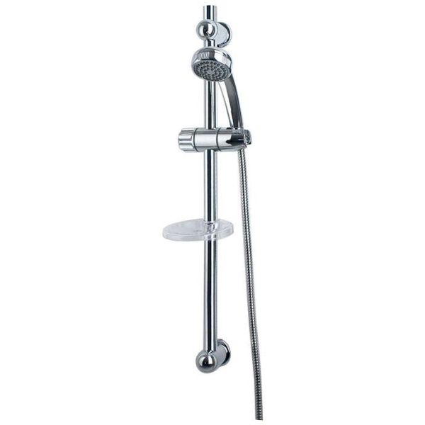 Art.nr: 2363508Dusjsett i kromutførelse. Dusjsettet inneholder en dusjstang, hånddusj, såpekopp og en dusjslange. Fleksibelt veggfeste for å bruke eventuelle gamle borehull.