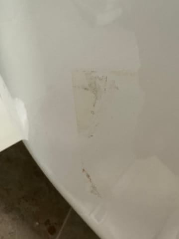 Hej! Badkaret verkar vara av god kvalitet men betyget dras ner för att vi just nu lägger lång tid på att få bort fula fläckar där olika klistermärken (och tejp) har satt. Både på undersidan och långsidan och avloppsröret. Vi ser också att bottenventilen sitter snett och det är svart på ena sidan. Kan detta börja rosta? Första intrycket är med andra ord inte så bra och då lämnar vi ändå klistermärkena på baksidan som inte syns.