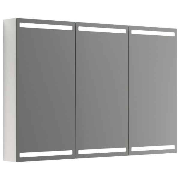 Art.nr: 3124065Et 120 cm speilskap med integrert belysning i topp og bunn samt lysstyring. Lysfeltene gir god belysning inne i speilskapet og samtidig svært god arbeidsbelysning ned over speilet og servanten.