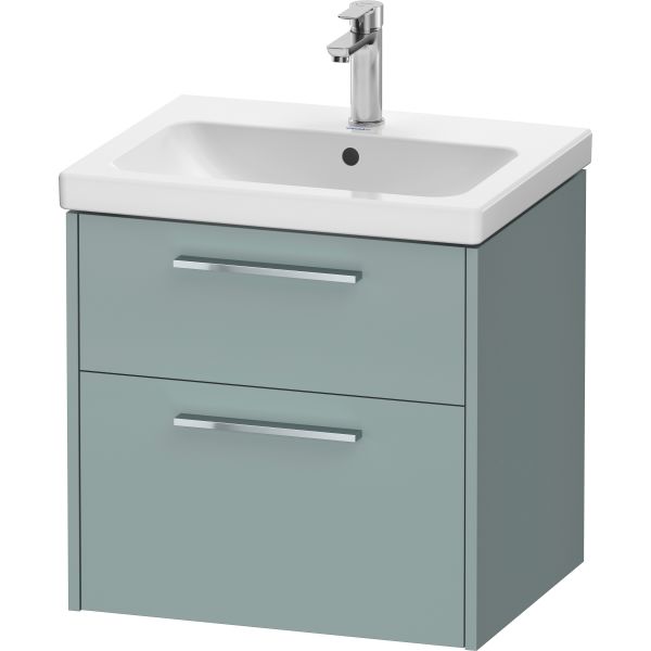 Duravit D-Code servantskap med 2 uttrekksskuffer, i hel fjordgrønn melamin, for servant D-Code # 239960, håndtak i krom. Servant medfølger ikke.
