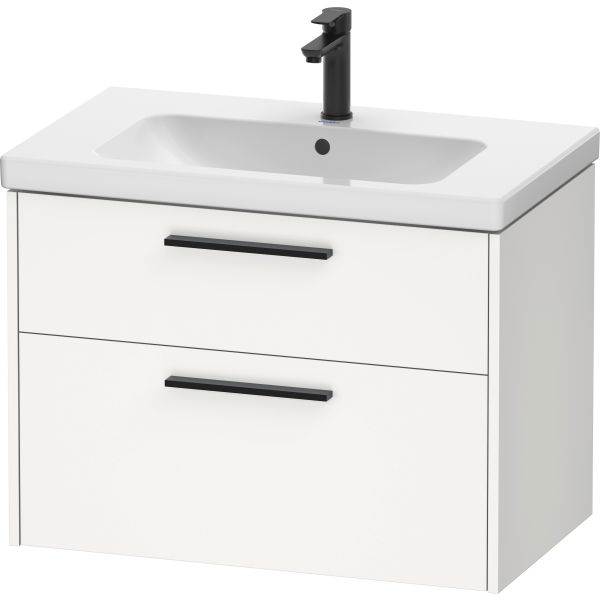 Duravit D-Code servantskap med 2 uttrekkskuffer, i helhvit matt melamin, for servant D-Code nr. 239980, håndtak i diamantsvart. Servant medfølger ikke.