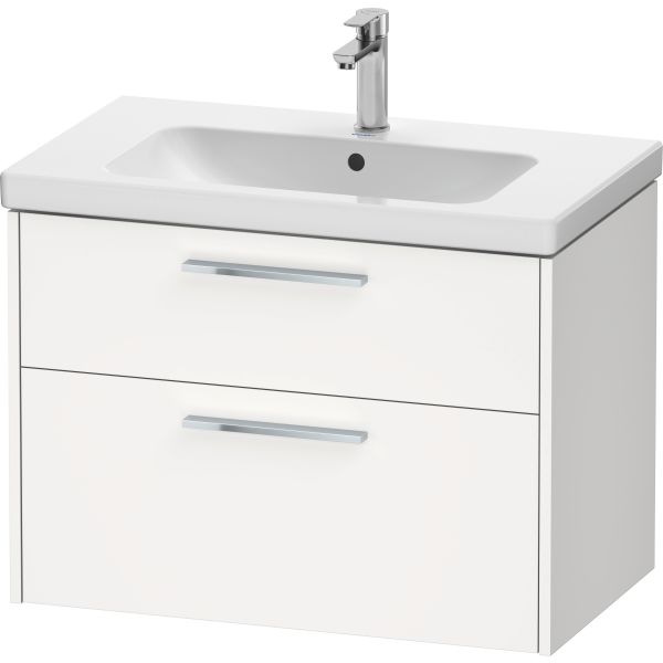 Duravit D-Code servantskap med 2 uttrekkskuffer, i helhvit matt melamin, for servant D-Code # 239980, håndtak i krom. Servant medfølger ikke.