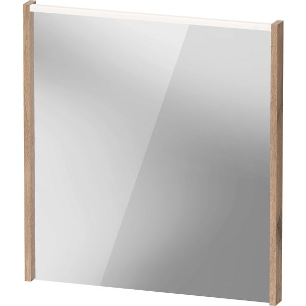 Duravit D-Code speil, 650x50x700 mm, marmorert eik, LED, lysfelt over, 4000 K, ekstern bryter, IP44.