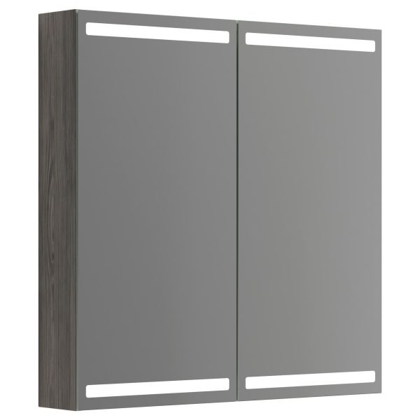 Art.nr: 3124072Et 80 cm speilskap med integrert belysning i topp og bunn samt lysstyring. Lysfeltene gir god belysning inne i speilskapet og samtidig svært god arbeidsbelysning ned over speilet og servanten.