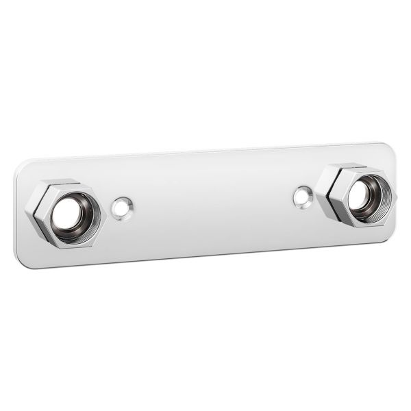 Art.nr: 2362850Forkrommet blandebatterifeste beregnet på skjult rørlegging og med et stilrent utseende med rette hjørner.Tilkoblingene har en C/C-avstand på 160 mm og innvendige gjenger i form av M26 x 1,5.Koblingssett for 12/15 Cu-rør og VVS-skrue medfølger.