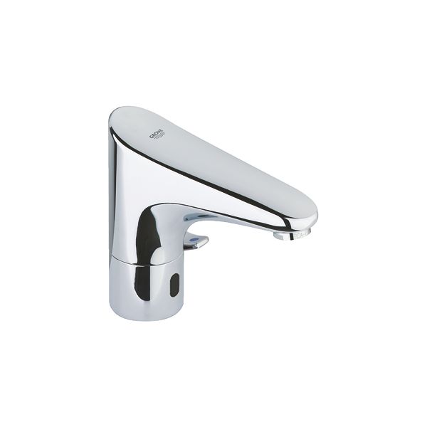 Europlus E infrarød elektronisk servantarmatur 1/2" med blandeenhet og justerbar temperaturbegrenser, med infrarød sensor for toveis kommunikasjon for overvåking, konfigurasjon og serviceformål, med støpsel 100–230 V AC, 50–60 Hz, 6 V DC, GROHE StarLight kromoverflate, GROHE EcoJoy strålesamler 5,7 l/min, fleksible tilkoblingsslanger, tilbakeslagsventil, inntakssil, magnetventil, GROHE QuickFix-system for rask montering, 7 forhåndsinnstilte programmer, automatisk spyling, termisk desinfeksjon, rengjøringsmodus, ekstra funksjonalitet og presise innstillinger med fjernkontroll 36 407, CE-nummer, lydklassifisert i henhold til DIN 4109, IP 59K-klassifisering, minste trykk: 1,0 bar.