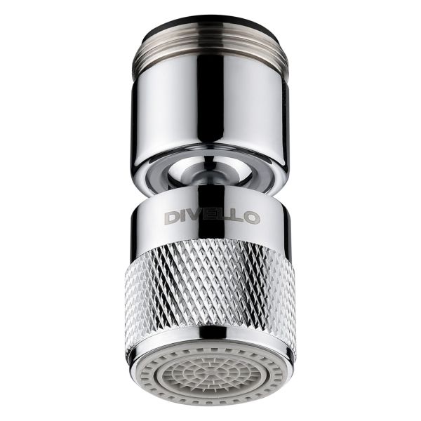 DIVELLO Expo luftfilter med kuleledd, for kjøkkenkran (f.eks. M22 x 1 mm eller u.g. M24 x 1 mm). Lufteren Expo gir mulighet til å bytte mellom vanlig stål og dusjstråle. DIVELLO DYNAMIC S-TECH sørger for at ønsket vannføring leveres gjennom hele eiendomsporteføljen selv om vanntrykket varierer i lokalsamfunn, eiendommer og avhengig av belastningen på vann-nettet.