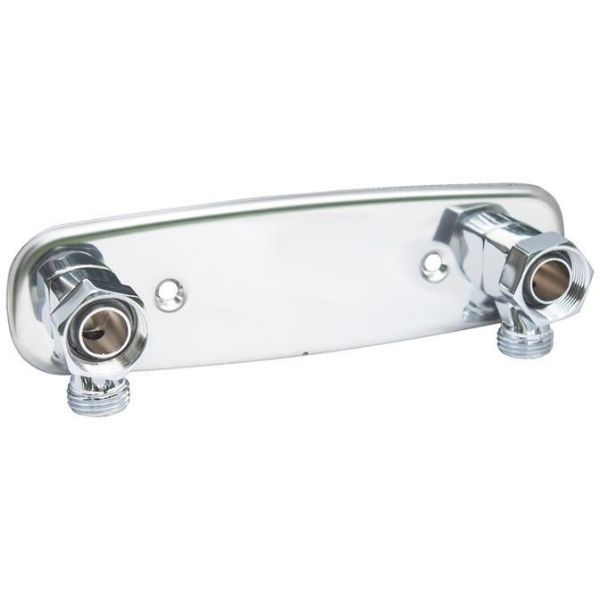 Trio Perfekta 8187466 er et forkrommet blandebatterifeste med vribare tilkoblingsvinkler og flat tetning for halvkoblinger.For synlig rørlegging.Blandebatterikoblingene har et C/C-mål på 160 mm og en innvendig M26x1,5-gjenge.Innløpstilkoblingene har G15-gjenger (utvendige).Har målene 60 x 210 x 39 mm (H x B x D).Leveres med VVS-skrue for montering.Uten koblinger.EgenskaperForkrommetMateriale:MessingFor synlig rørleggingMed flat tetning for halvkoblingerMed dreibare tilkoblingsvinklerUten koblingerMedfølgende tilbehørVVS-skrueTekniske data:C/C-avstand160 mmAvstand, skruehull (c/c)100 mmTilkobling, blandebatteriM26 x 1,5 innvendigTilkobling, innløpG15 utvendigHøyde60 mmBredde210 mmDybde39 mm