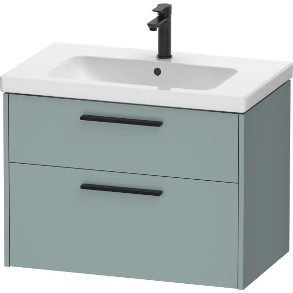 Duravit D-Code servantskap med 2 uttrekkskuffer, helintegrert i fjordgrønn melamin, for servant D-Code nr. 239980, håndtak i diamantsvart. Servant medfølger ikke.