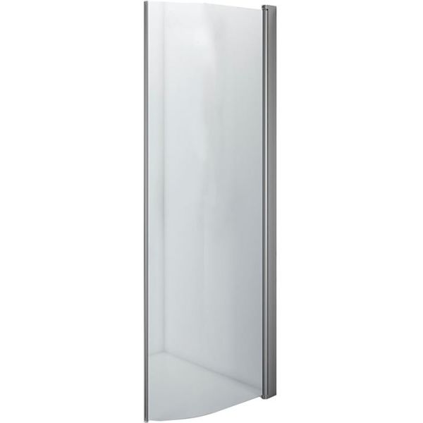 Art.nr: 2361946Bøyd dusjvegg med knott. Väggen er i klart, herdet sikkerhetsglass og har matt aluminiumsprofil.