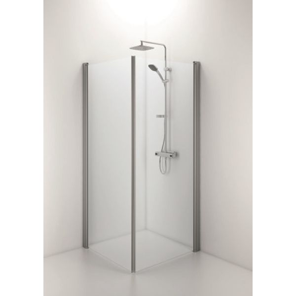 Ifö Space SPNK 900 er en rett dusjvegg med håndtaksprofil og klart, herdet sikkerhetsglass.
