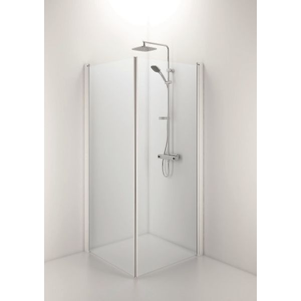 Art.nr: 2361958Rett dusjvegg med håndtaksprofil. Veggen er i klart, herdet sikkerhetsglass og har hvitlakkert profiler.