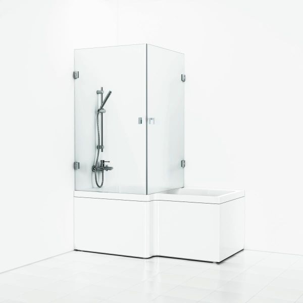 Svedbergs 658788 er en dusjvegg for badekar. 2 hjørnedører i herdet sikkerhetsglass, 180°.