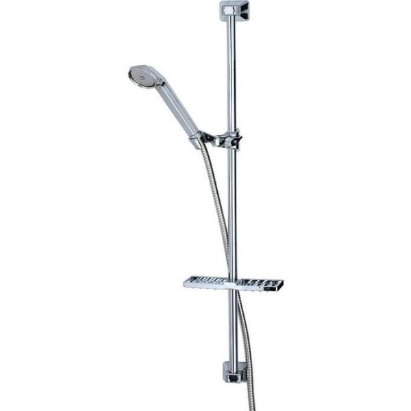 Art.nr: 2363504Et dusjsett i krom utstyrt med 60 cm dusjstang, hånddusj med antikalkfunksjon, 1,5 m dusjslange og sjampohylle.