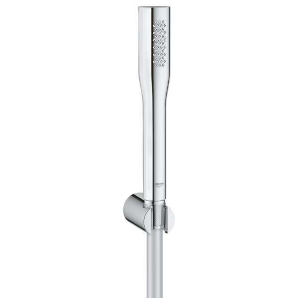 Dette dusjsettet for badekaret ditt er komplett og leveres med Euphoria Stick Cosmopolitan hånddusj, veggfeste og dusjslange. Dusjhodet er svært praktisk og har en elegant, slank form. Strålen er samlet, men føles myk når du dusjer, samtidig som den er kraftig nok til å rengjøre badekaret. Takket være GROHE EcoJoy kan du redusere vannforbruket, noe som er bra både for miljøet og lommeboken. Inner WaterGuide beskytter den forkrommede GROHE StarLight-overflaten fra innsiden og holder dusjhodet tilstrekkelig avkjølt for enkel og trygg håndtering. Med SpeedClean er det også enkelt å holde dusjen fri for kalk. Dra bare fingrene over dysene på dusjhodet, så fjernes kalkavleiringene.