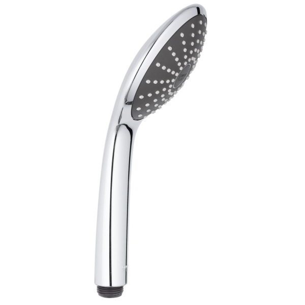 GROHE Vitalio Joy Mono-hånddusj har en diameter på 110 mm og et stilig, moderne design som passer perfekt i alle moderne baderom. Den er produsert i Tyskland og kan enkelt skrus fast på alle standard dusjslanger for en rask oppgradering. Denne hånddusjen, som er utstyrt med den beroligende stråletypen Rain Spray, er også fullpakket med GROHEs avanserte teknologi. GROHE EcoJoy reduserer vannforbruket – vannmengden er begrenset til maks. 9,5 l/min – men sikrer likevel full dusjkomfort. GROHE DreamSpray sørger for at vannstrømmen fra hvert enkelt munnstykke er balansert og jevn, og SpeedClean-silikonmunnstykkene gjør den enkel å holde fri for smuss og kalkbelegg. Den ripebestandige, forkrommede StarLight-overflaten i flere lag har en glans som varer i mange år, mens InnerWater Guide-systemet hindrer at overflaten på dusjen blir for varm.