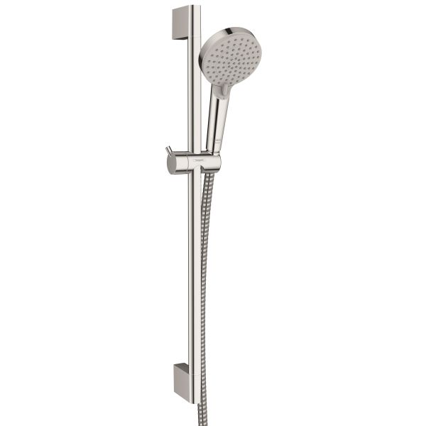 Hansgrohe Vernis Blend Vario er et forkrommet dusjsett som inkluderer hånddusj, Crometta dusjstang på Ø22x650 mm, dusjslange med dobbeltsidig konisk mutter og skyvebrakett. Hånddusjen har en dusjhodestørrelse på 100 mm og to stråletyper. Stråletypebytte skjer med dreibar stråleskive. Dusjholderen kan dreies 45°. Hånddusjen leverer også en maksimal strømningshastighet på 15,2 l/min (ved 3 bar).
