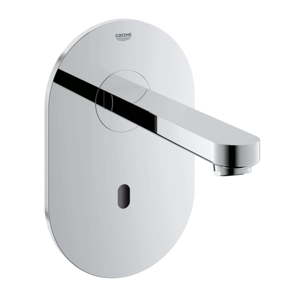 Euroeco Cosmopolitan E infrarød elektronikk for servant uten armatur, med infrarød sensor for toveis kommunikasjon for overvåking, konfigurering og serviceformål, for kaldt eller forhåndsblandet vann, med transformator 100–230 V AC, 50–60 Hz, 6 V DC, GROHE StarLight kromoverflate.