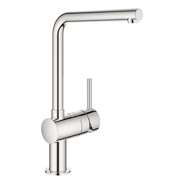 Stil møter ytelse i kjøkkenbatteriet Minta. Med sin L-formede tut gir dette kjøkkenbatteriet en attraktiv og stilren utforming til kjøkkenet. Det er nøye designet ned til minste detalj og tilbyr enestående allsidighet. Det leveres dessuten med et justerbart svingområde som kan stilles inn på 0°, 150° eller 360°, slik at du kan låse tuten i posisjon eller enkelt veksle mellom to oppvaskkummer. Takket være den høye tuten kan du uten problemer fylle selv høye kjeler og gryter. Batteriet er produsert med GROHE SilkMove-teknologi, og har en keramisk innsats som gjør at du enkelt og presist kan regulere vannmengde og temperatur. Med GROHEs enkle installasjonssystem kan du montere ditt nye kjøkkenbatteri på kort tid, slik at du raskt og enkelt får et nytt visuelt blikkfang på kjøkkenet. Takket være den holdbare, forkrommede GROHE StarLight-overflaten beholder det sitt blanke, skinnende utseende selv etter mange års bruk.
