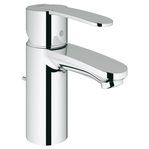 Servantarmaturet GROHE Wave Cosmopolitan, med sitt elegante design og høye brukskomfort, passer godt i moderne baderom. Denne ettgrepskranen i standardstørrelse betjenes med et solid metallhåndtak og leveres med en stilren pop-up-bunnventil.