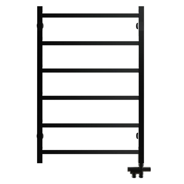 Somatherm Dottevik er en stilren og elegant, vannbåren, svart håndkletørker med firkantede rør. Leveres med vannventilen Racken, som er laget for synlig rørmontasje med tilkobling for ett- eller torørssystem. Vanntilkoblingen kobles til det eksisterende radiatorsystemet (ikke VVC).