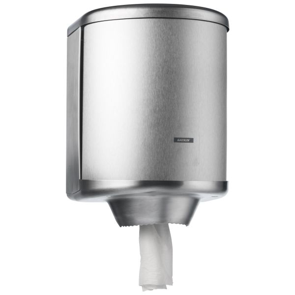 Elegant dispenser i børstet eller hvitlakkert stål. Kontrollvindu viser når det er på tide å fylle på papir. Fronten brettes lett til siden og forenkler fylling med mye papir på en gang. Låsbar.