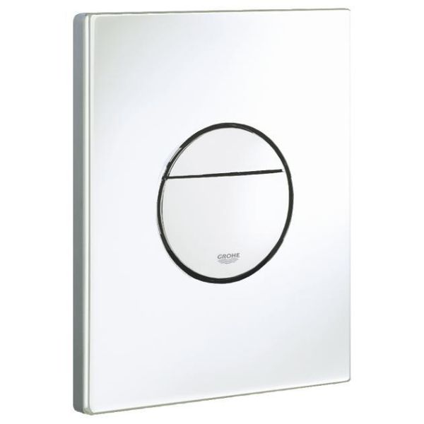 Grohe Starttrykkplate for dobbel spyling eller start/stopp funksjon. For pneumatisk dreneringsventil AV1. Vertikal og horisontal montering. Seiltrykkplate er integrert med GROHE vannbesparende teknologi.