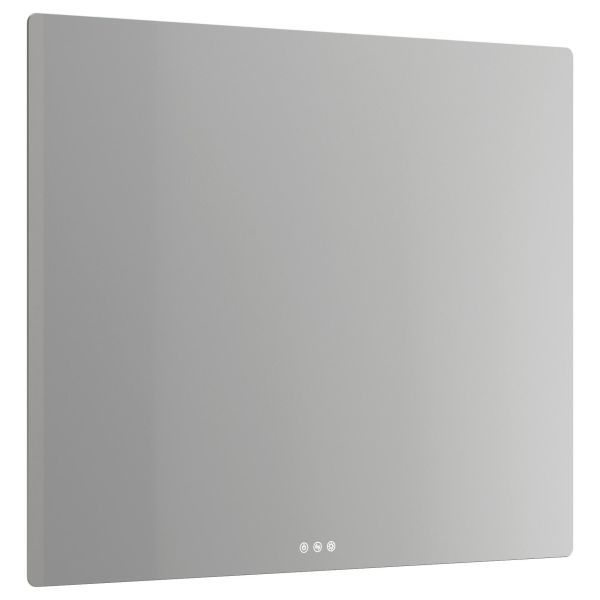 En myk speil med lysstyring, 80x100 cm. De avrundede hjørnene på Soft-speilet myker opp det skarpe og kantete uttrykket, og den romslige høyden gir deg en stor flate å speile deg i.