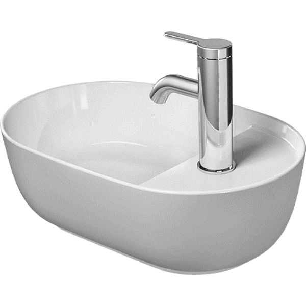Servantskål LUV 420x270, uten overløp men med blandingsbatterihull, for plassering på benkeplate, vendbar