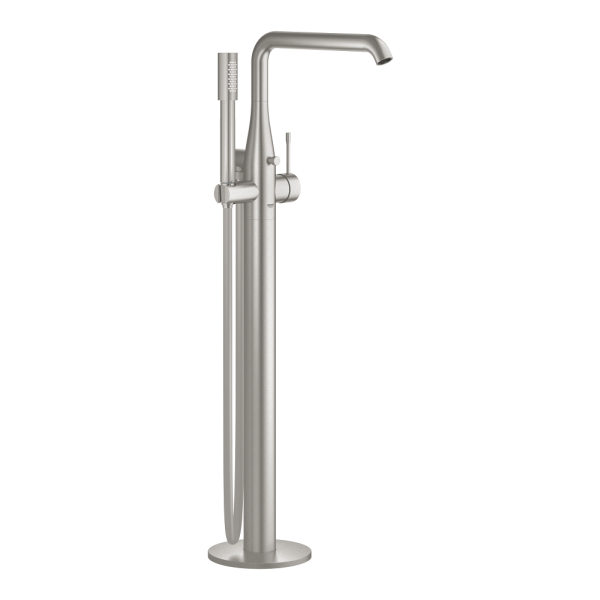 Den frittstående GROHE Essence éngrepsbatteriet for badekar er utført i elegant GROHE SuperSteel og passer perfekt hvis du ønsker et frittstående badekar i et stilig og moderne baderom. Den er full av GROHE-teknologi som gjør den svært behagelig og enkel å bruke.