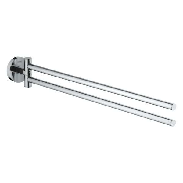 Den fleksible og praktiske GROHE Essentials-håndklestangen med to svingbare armer er konstruert for veggmontering ved siden av en vaskeservant og sørger for at du alltid har håndklærne nær for hånden. Den slitesterke forkrommede GROHE StarLight-overflaten gjør at den ser frisk ut i mange år fremover.