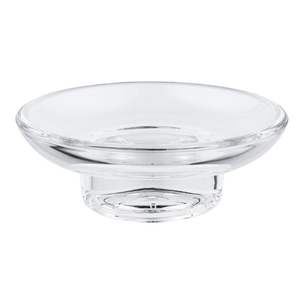 GROHE Essentials er en såpekopp av glass som passer i følgende holder: Essentials (40 369 xx1/102 466 2430), Essentials Cube (40 508), Bau Cosmopolitan (40 585), Essentials Authentic (40 652).