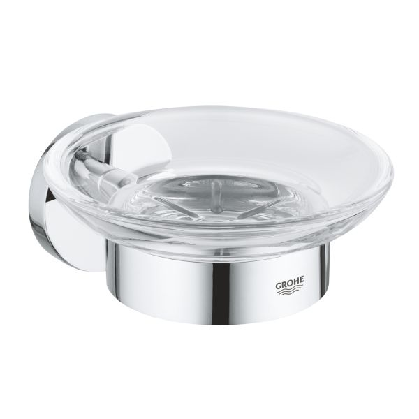 GROHE Essentials er en såpekopp av glass med holder. Bæreevne på maks 5 kg.
