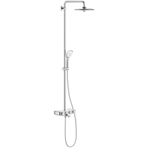 Grohe SmartControl System 260 er et dusjsett med termostat for veggmontering med badekarutløp. Settet inneholder en horisontal dusjarm på 450 mm, en SmartControl-termostat med badekarsutløp, en hodedusj med tre strålemønster (Rain, SmartRain, Jet), en hånddusj med tre stråletyper (Rain, SmartRain, Massage), justerbar høyde med glidende element og en dusjslange. Dusjsystemet har bl.a. egenskaper som GROHE DreamSpray, GROHE Cooltouch, GROHE TurboStat kompakt innsats med voksbasert keramisk kropp og GROHE EcoJoy vannbesparende teknologi.