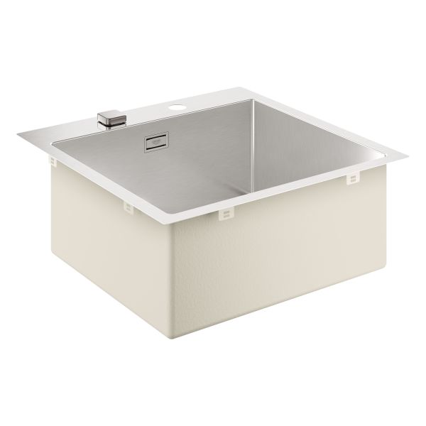 GROHE K800-kjøkkenvask i rustfritt stål er et kompakt og slitesterkt alternativ som dekker behovene på et travelt kjøkken. Den er designet for planlimt/planmontert installasjon for en sømløs overgang mot benkeplaten og er fremstilt av materialer av høyeste kvalitet med en førsteklasses overflate. En kumdybde på 20 cm gjør vasken svært praktisk og romslig nok for store kjeler og gryter. Selve kummen har skarpe vinkler og en stilren, diamantformet bunn, og den automatiske bunnventilen med fjernbetjening gjør at du kan åpne og lukke ventilen uten å måtte sette hånden i det skitne vannet. Det finnes også et minimalistisk, firkantet overløp og GROHE Whisper-lydisolering på undersiden som reduserer støy. Vasken er produsert i GROHE StarLight AISI 304 rustfritt stål med børstet overflate som gjør materialet mindre porøst og enklere å holde rent, noe som gir et varig, pent utseende. Velg mellom en klassisk toppmontert installasjon med 1 mm profil eller en planlimt/planmontert versjon med 1,5 mm utsparing, perfekt for å ligge helt i plan med benkeplaten.