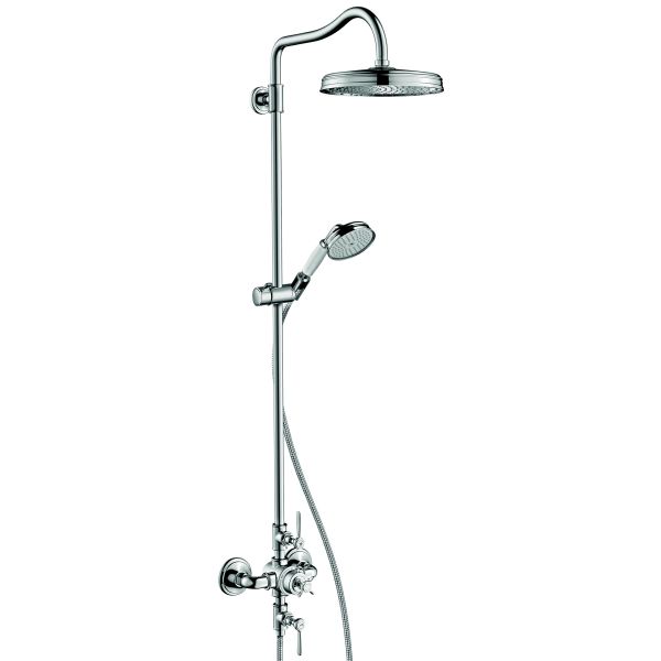 Hansgrohe Axor Montreux er en kolleksjon med autentisk, detaljert og kontrasterende design. Designet er inspirert av tidlig 1900-tall med karakteristiske piper og porselensdetaljer som gjør at dusjsettet passer perfekt inn på bad med en klassisk og retroinspirert stil.