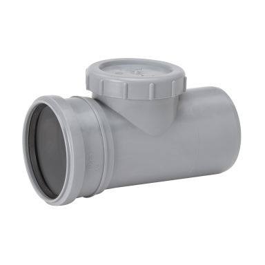 Renserør i materialet polypropylen med 2 muffer og lokk.For innendørs avløp.Røret har en utvendig diameter på 110 mm og renseåpningens diameter også 110 mm.
