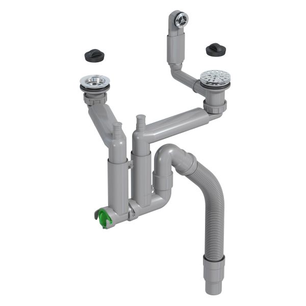 Vannlås Intra Smartloc A3, dobbel. Med bunnventil, overløp, to propper og silkurv.