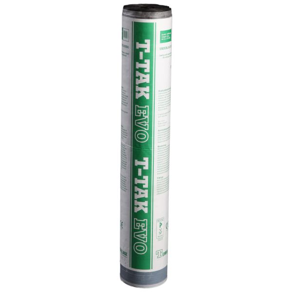 T-tak YAP-EVO er ment som underlagstekking på treunderlag, for yttersjikt av overleggsplater (betong eller tegl), overleggsskiver, flat plate, takpapp eller formskåret papp (shingel). Kan brukes på takhellinger ned til 6º der det dekkende yttersjiktet tillater det. Er oppbygd av et polyestersjikt belagt med elastomerasfalt (SBS). Polypropenbelagt på begge sider. En kant er utstyrt med selvklebende bitumenlim og belagt med beskyttelsefolie. Godkjent iht. Rise og P-merket.