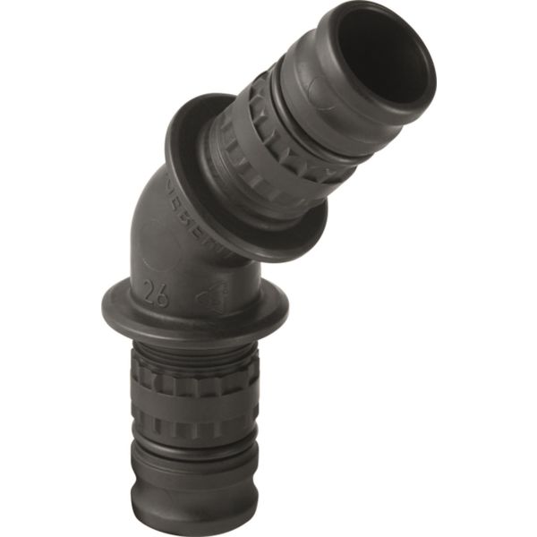 Art.nr: 2816011Vinkel med 2 x slettende og 45° bøyningsvinkel.Egnet for varme og tappevann.